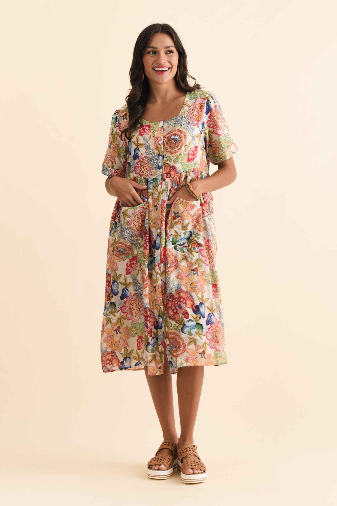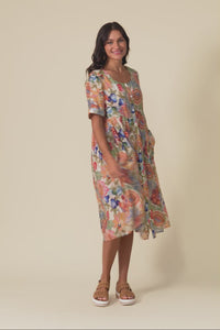 Rayna Orange Garden Button Dress