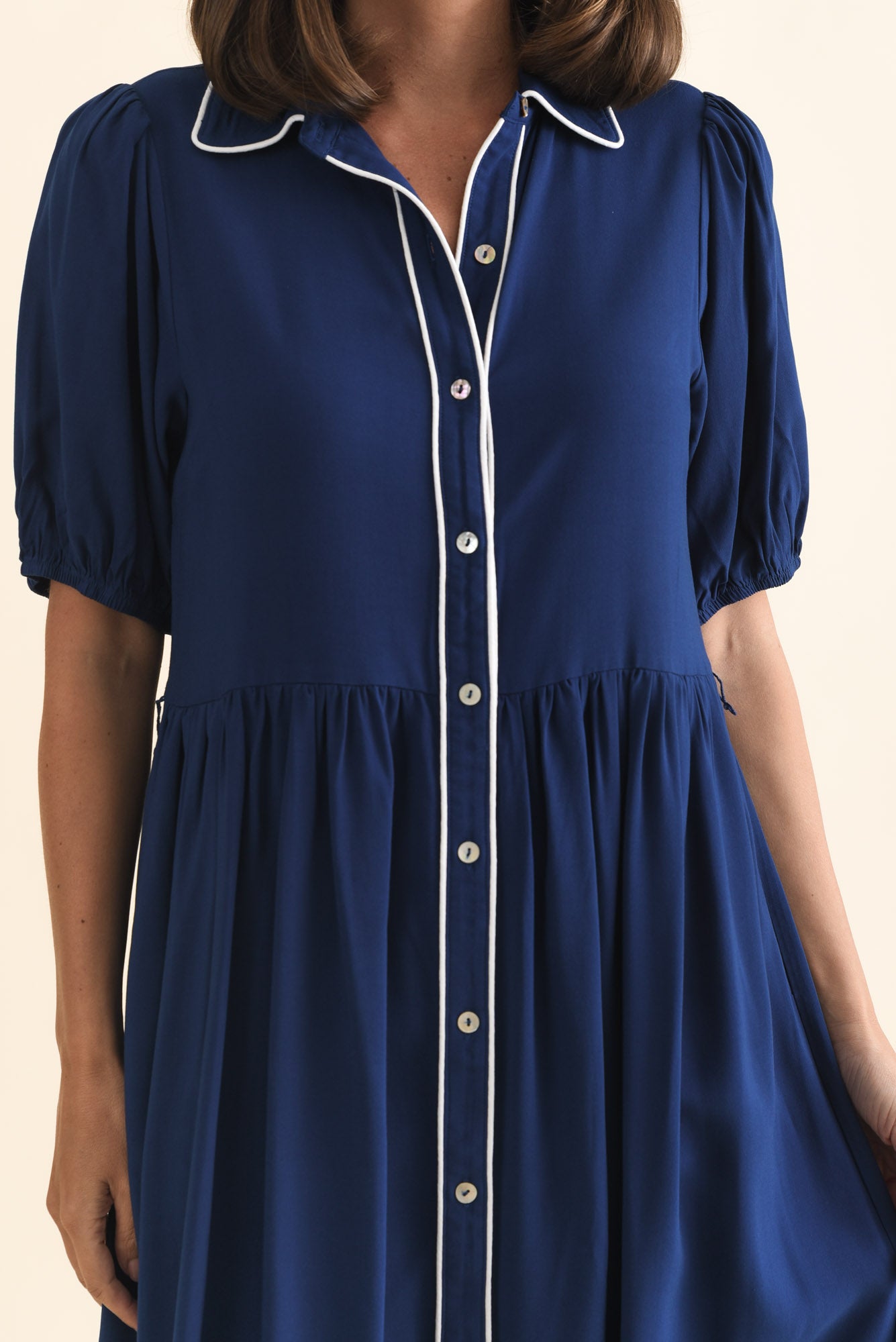 RIO REEF NAVY CONTRAST SHIRT DRESS