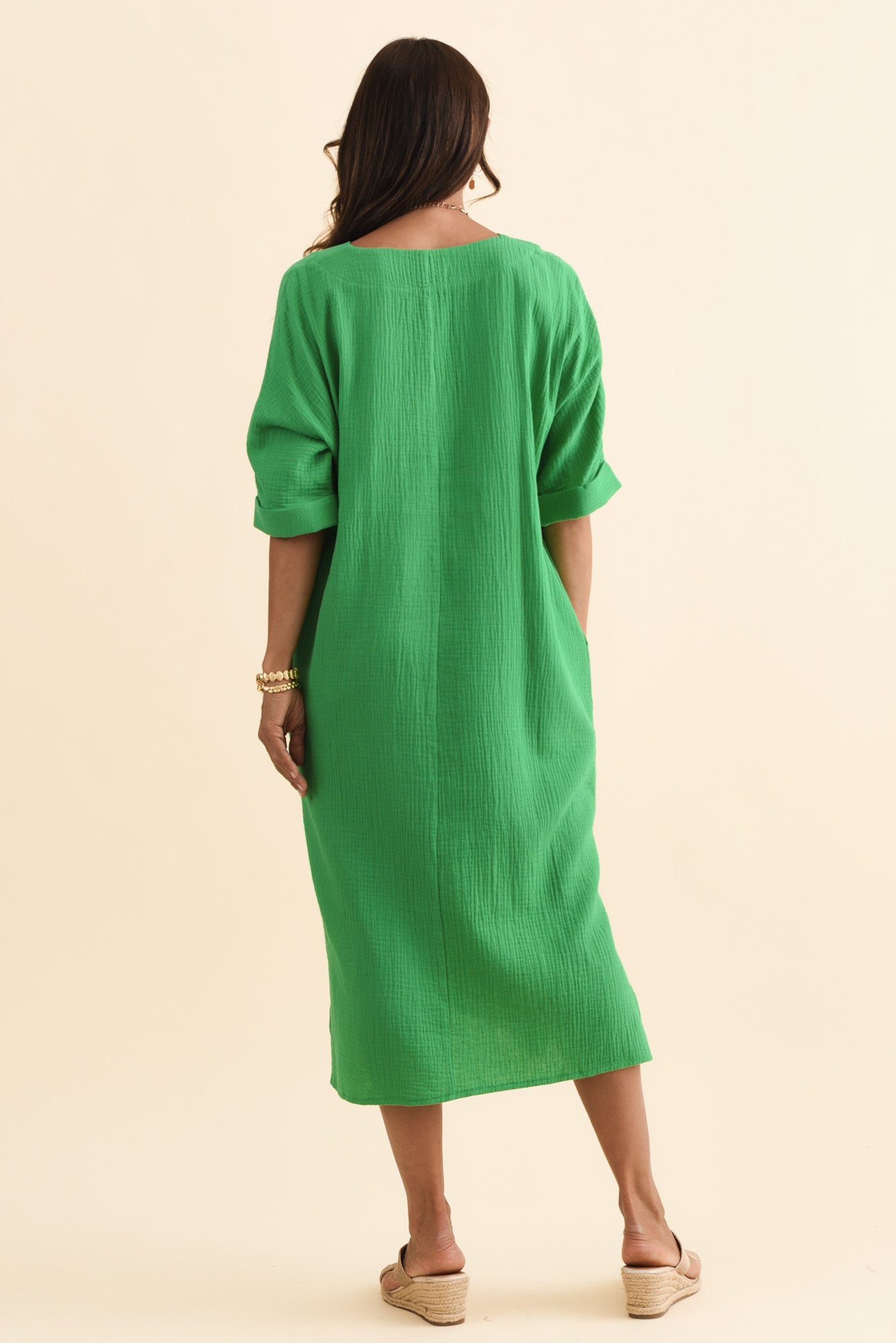Roma Green Cotton Cheesecloth Dress