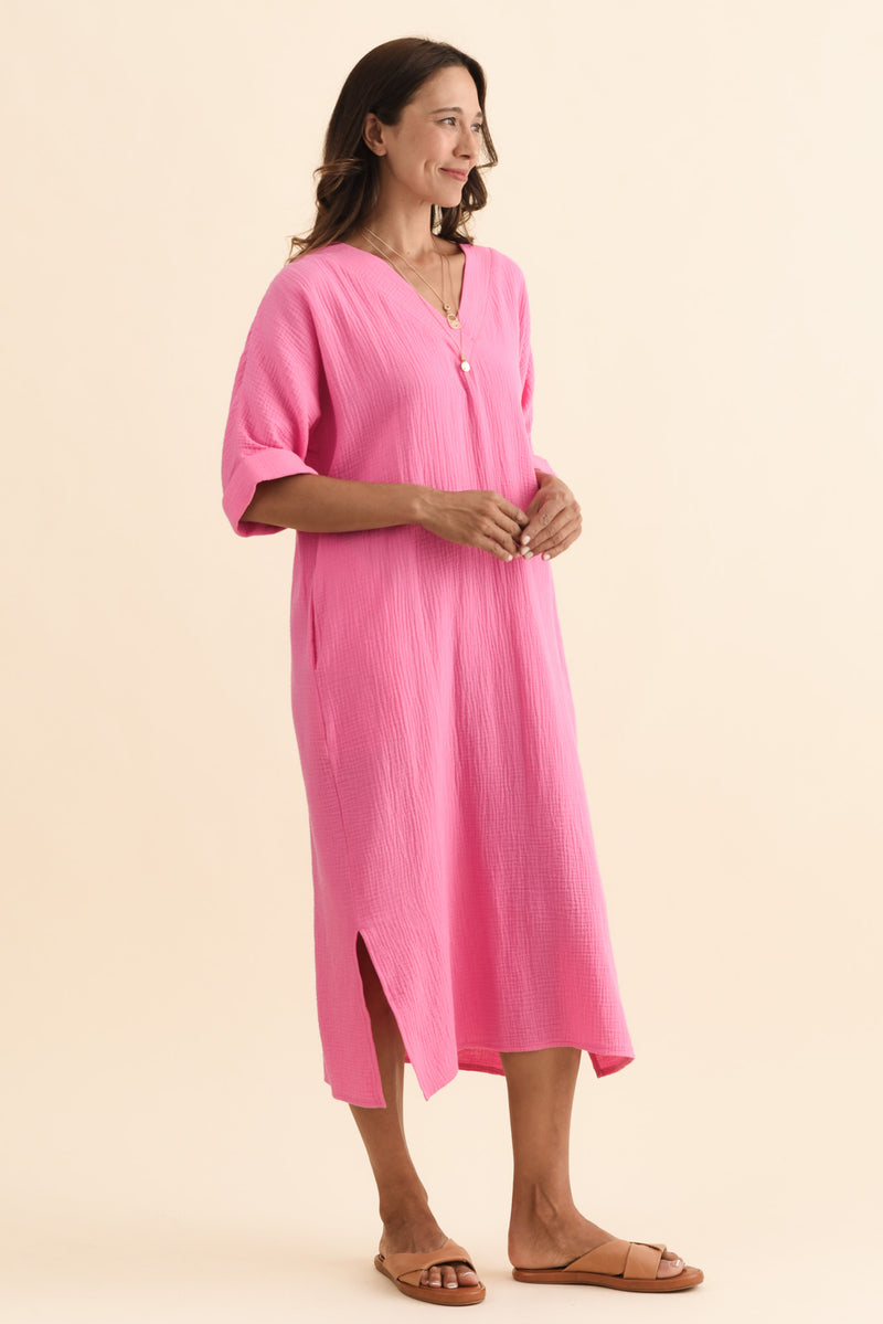 Roma Pink Cotton Cheesecloth Dress