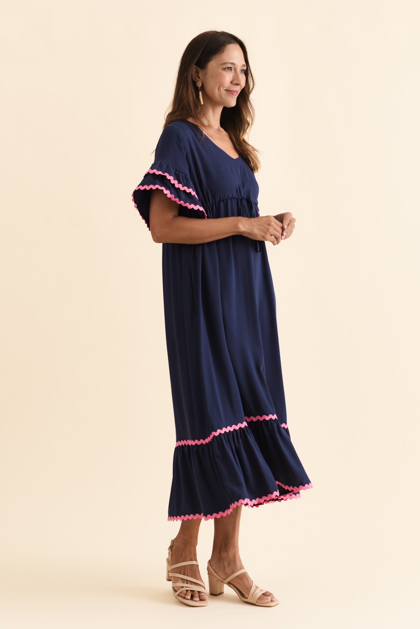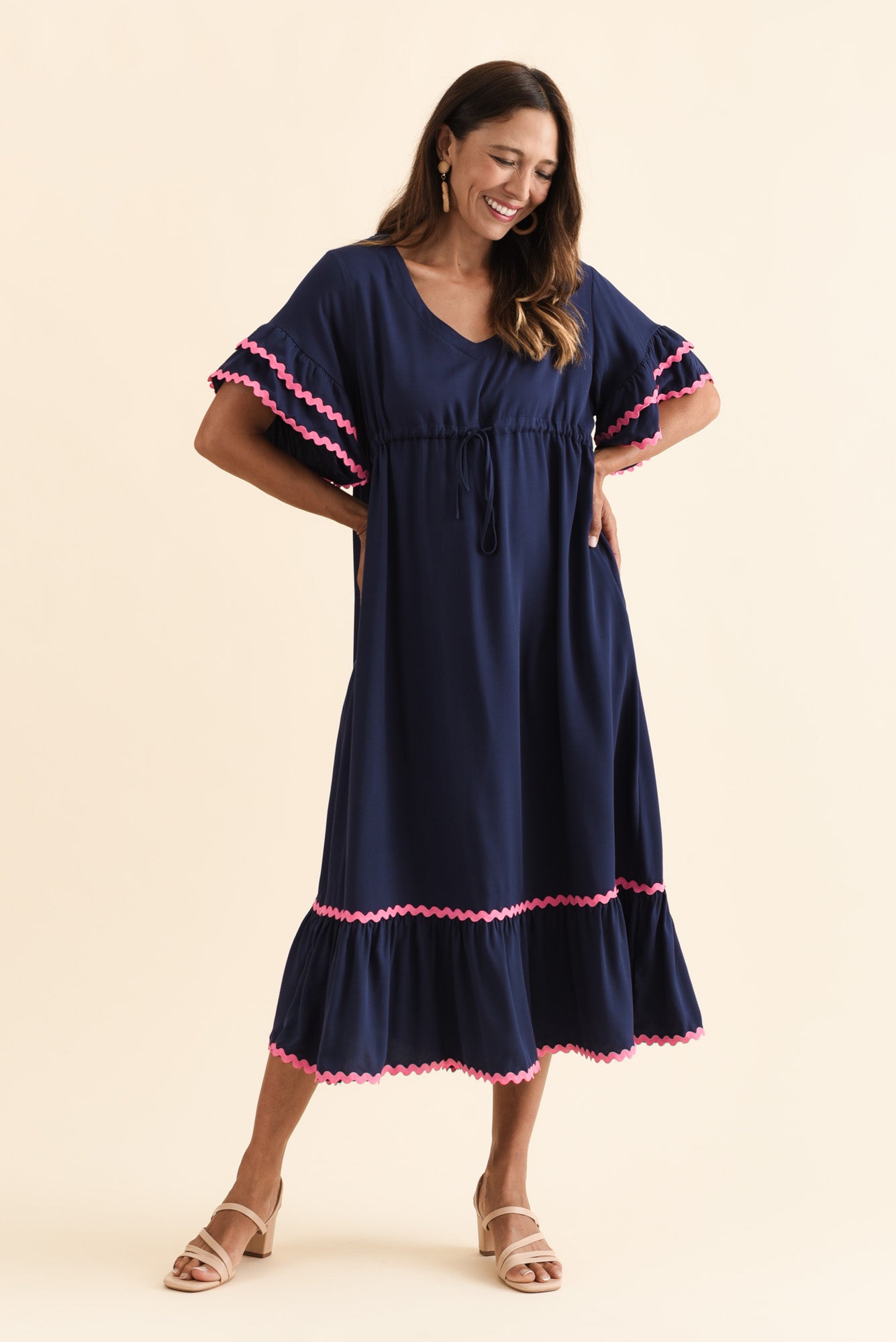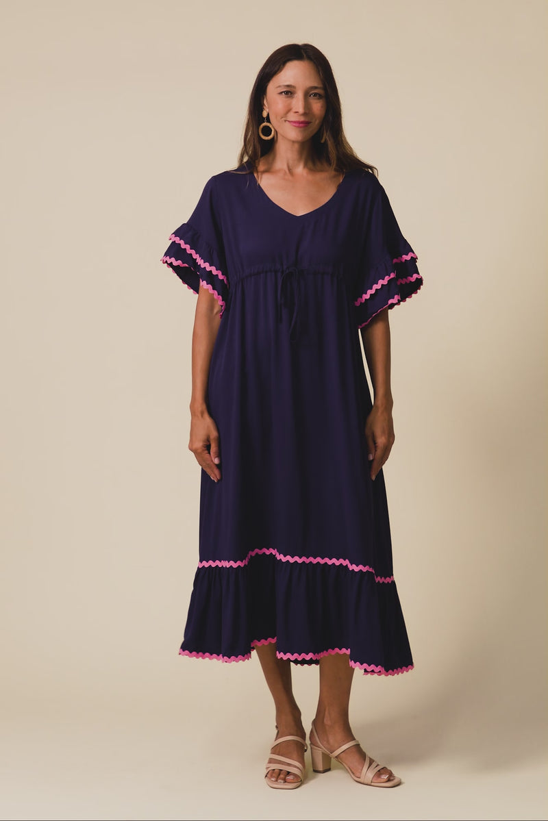 Rosemarie Navy Contrast Frill Dress