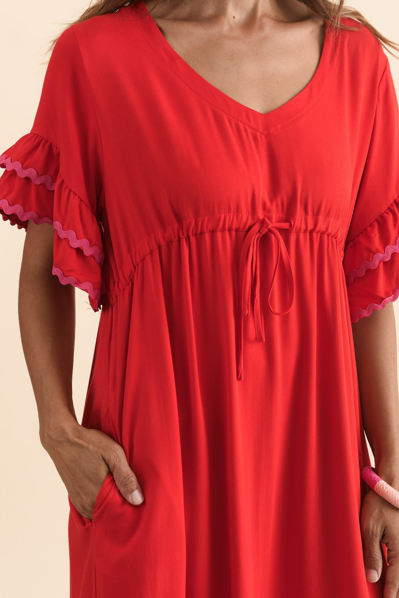 ROSEMARIE RED CONTRAST FRILL DRESS