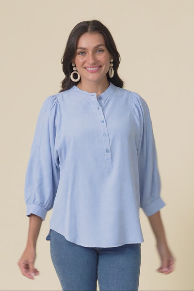 ROWAN BLUE LYOCELL PUFF SLEEVE SHIRT