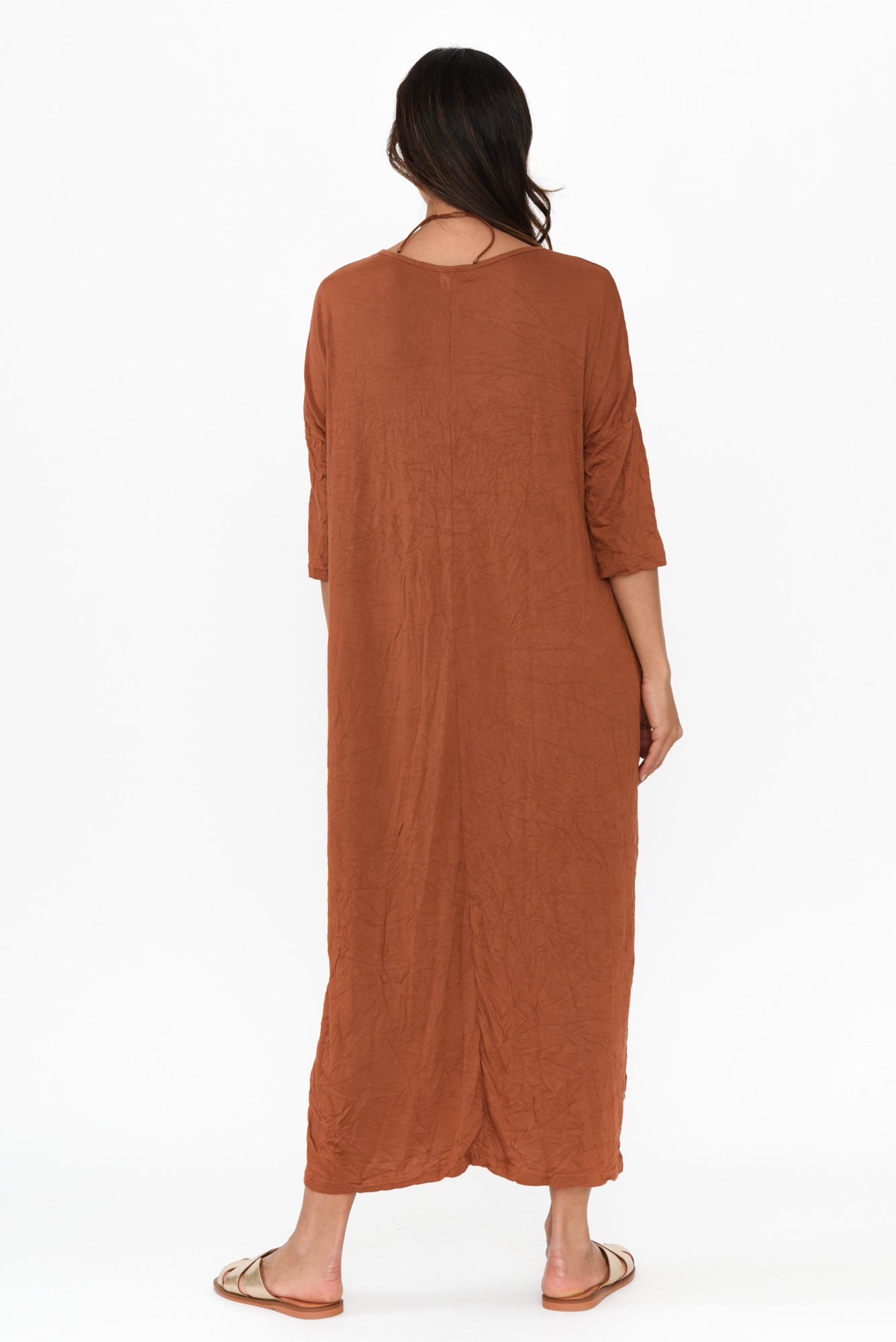 Travel Rust Crinkle Cotton Sleeved Maxi Dress
