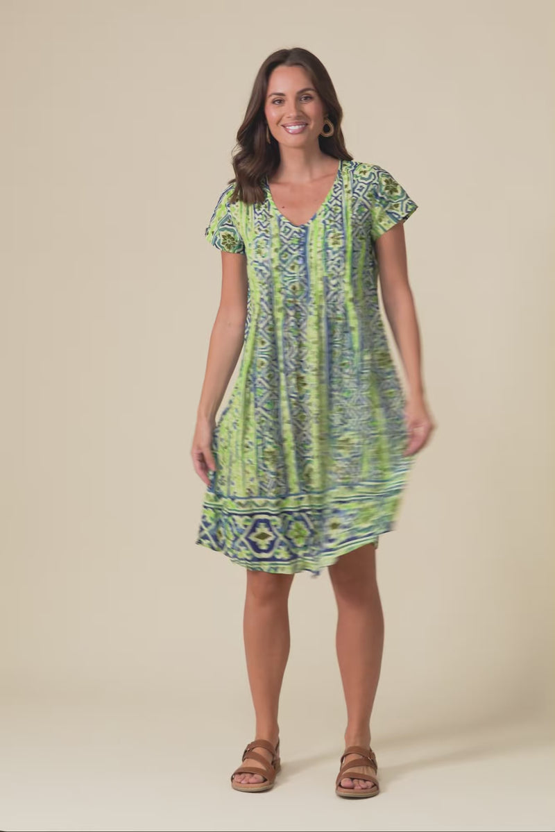 Sabina Blue Abstract Crinkle Cotton Dress