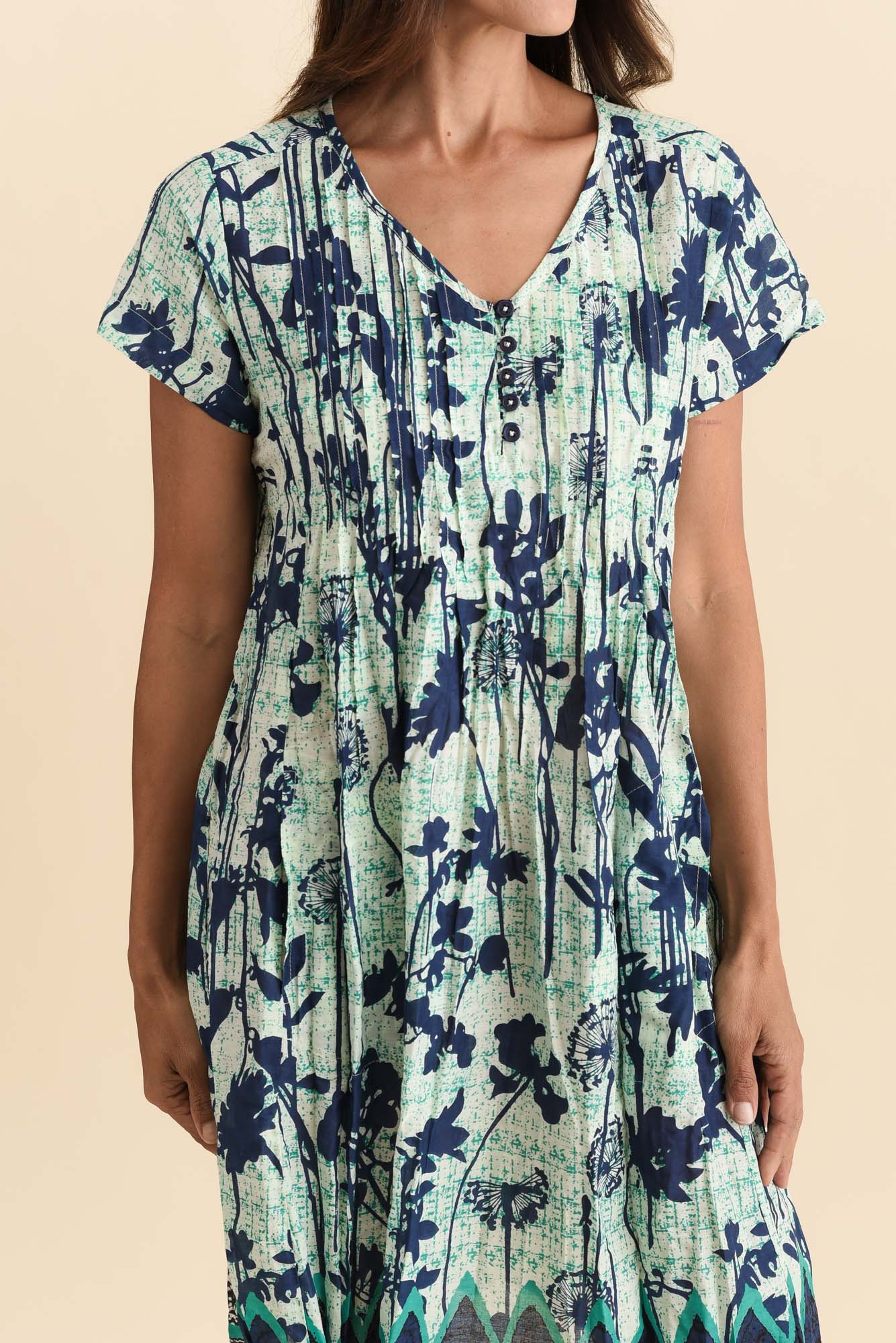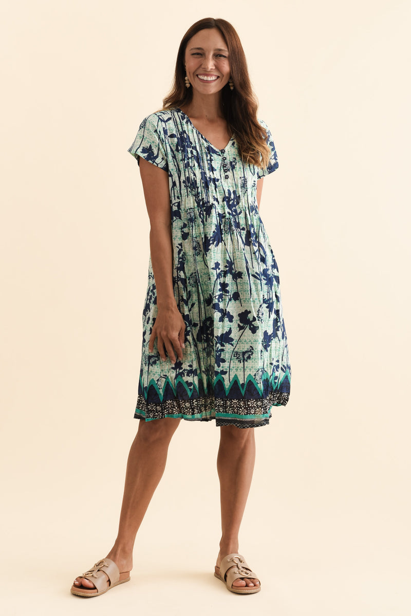 Sabina Navy Dandelion Crinkle Cotton Dress