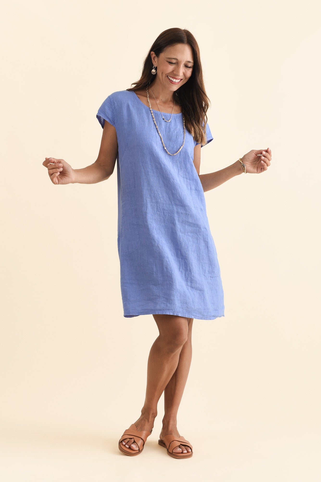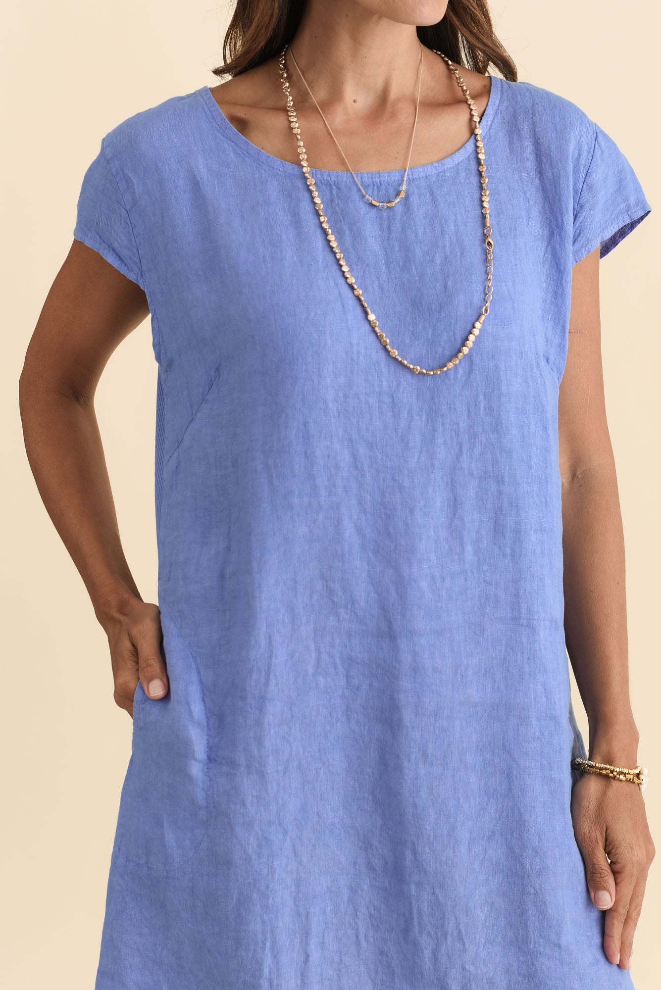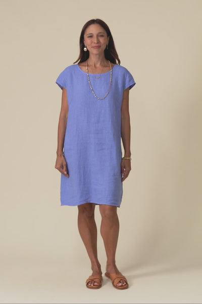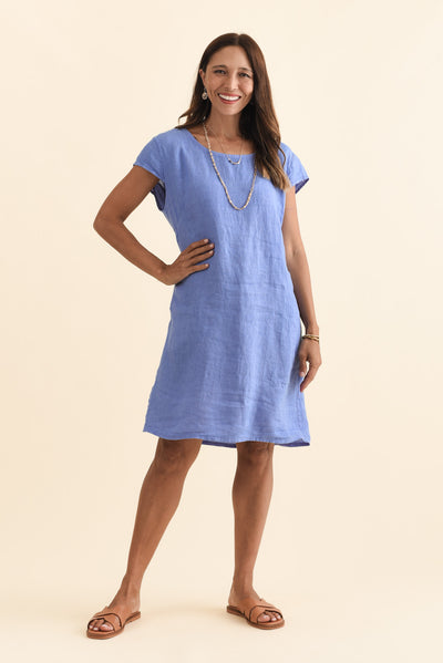 Sahara Blue Linen Pocket Dress
