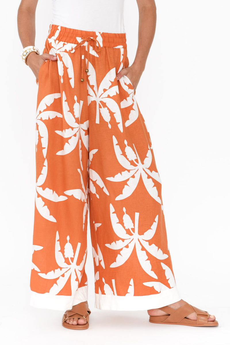 Sandrine Orange Tropical Linen Pants