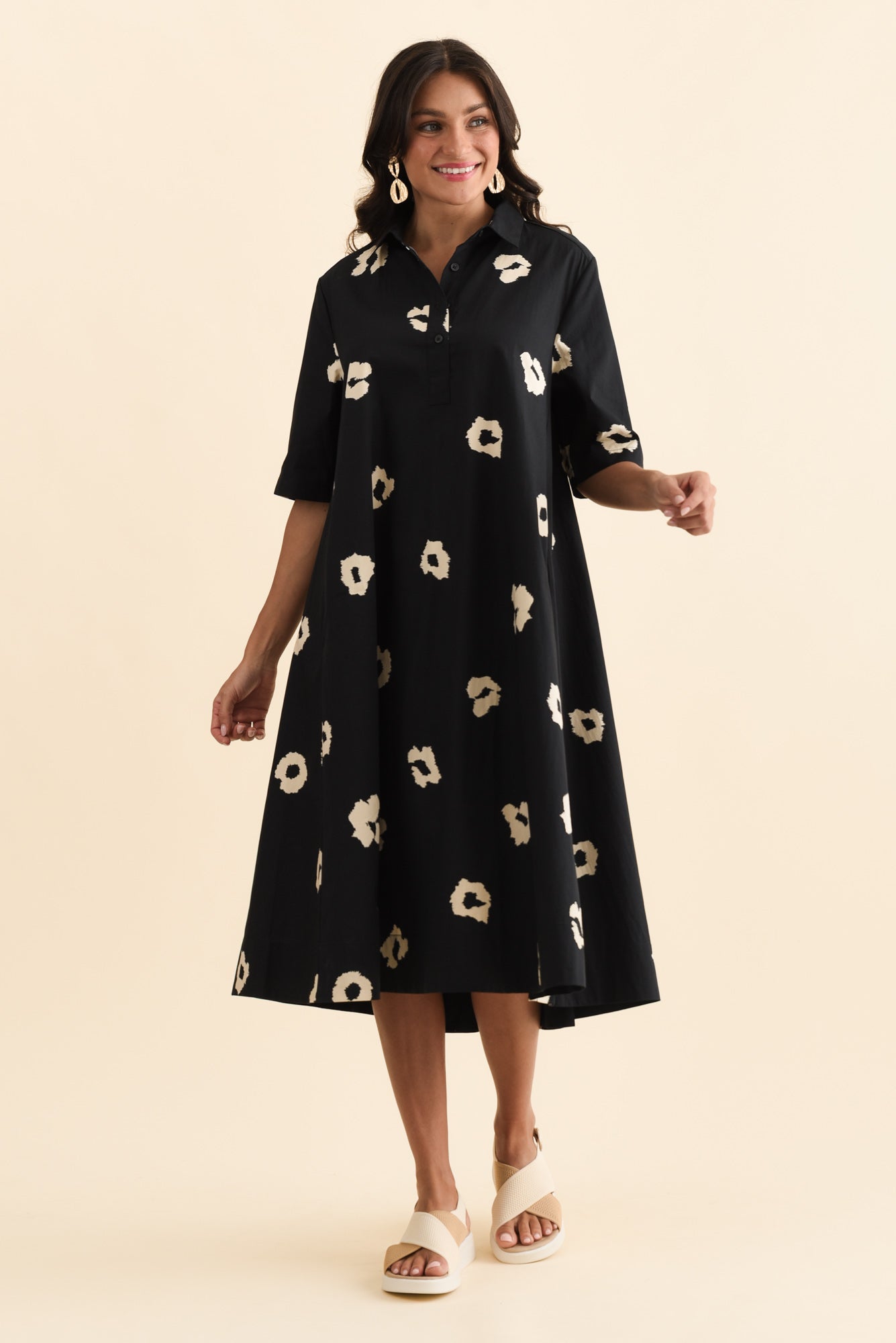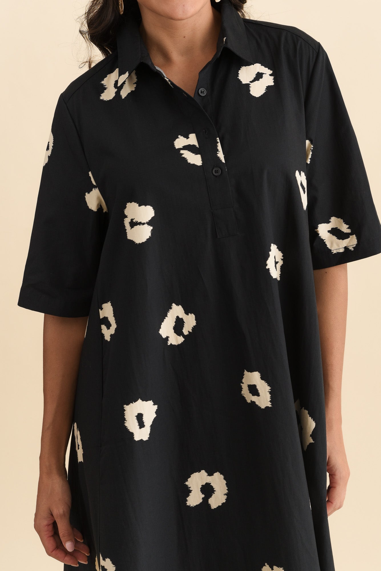 Savannah Black Leopard Cotton Shirt Dress