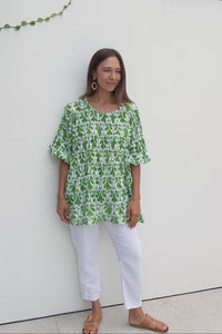 Selma Green Abstract Crinkle Cotton Top
