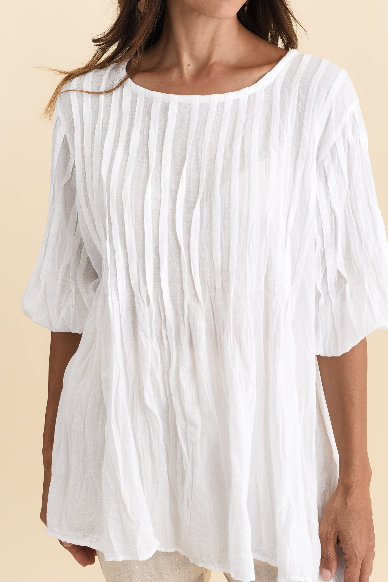 Selma White Crinkle Cotton Top