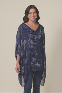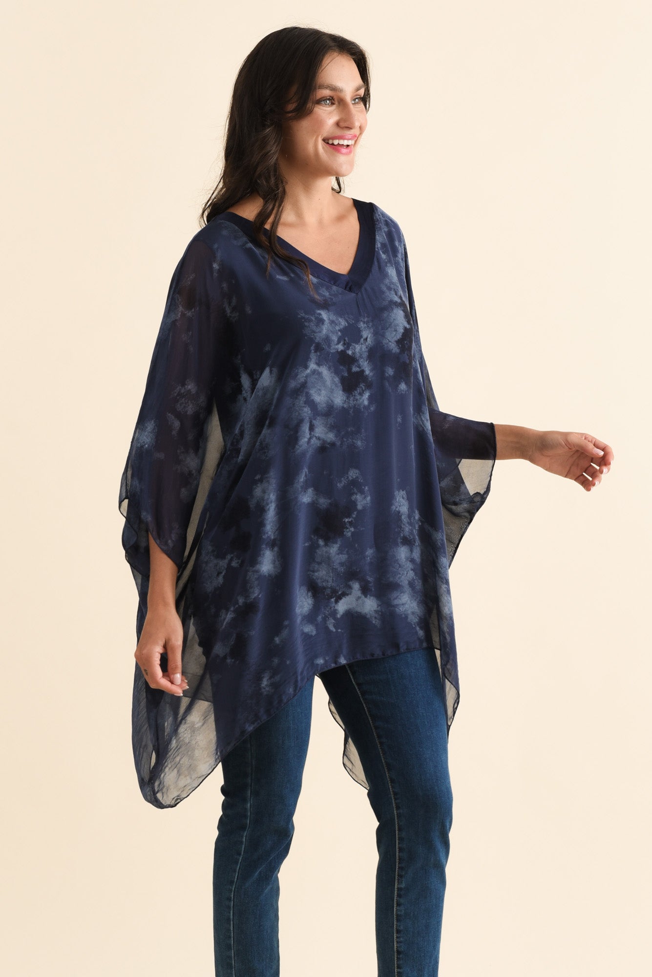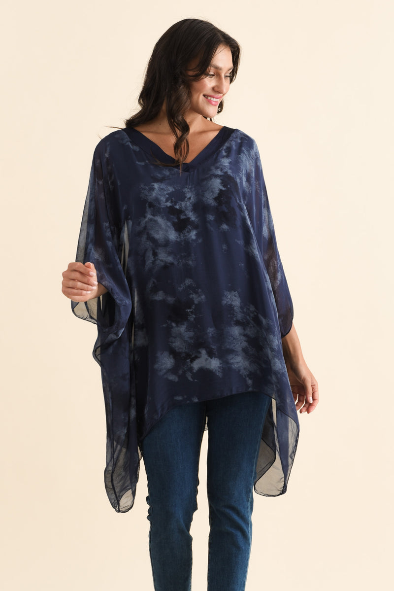 SENDAI NAVY MARBLE SILK LAYER TOP