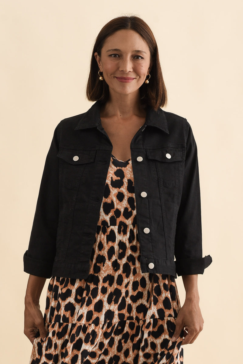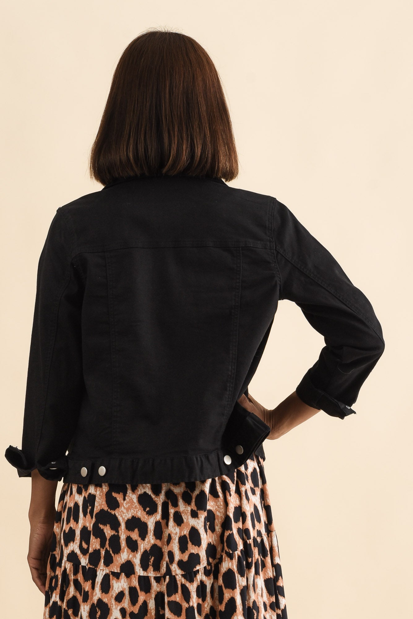 A versatile layering essential, crafted from a soft and stretchy cotton blend that offers a sleek denim look and feel