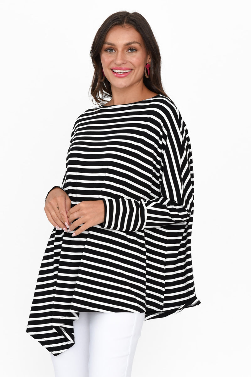 SUSIE BLACK STRIPE ASYMMETRICAL BAMBOO TOP