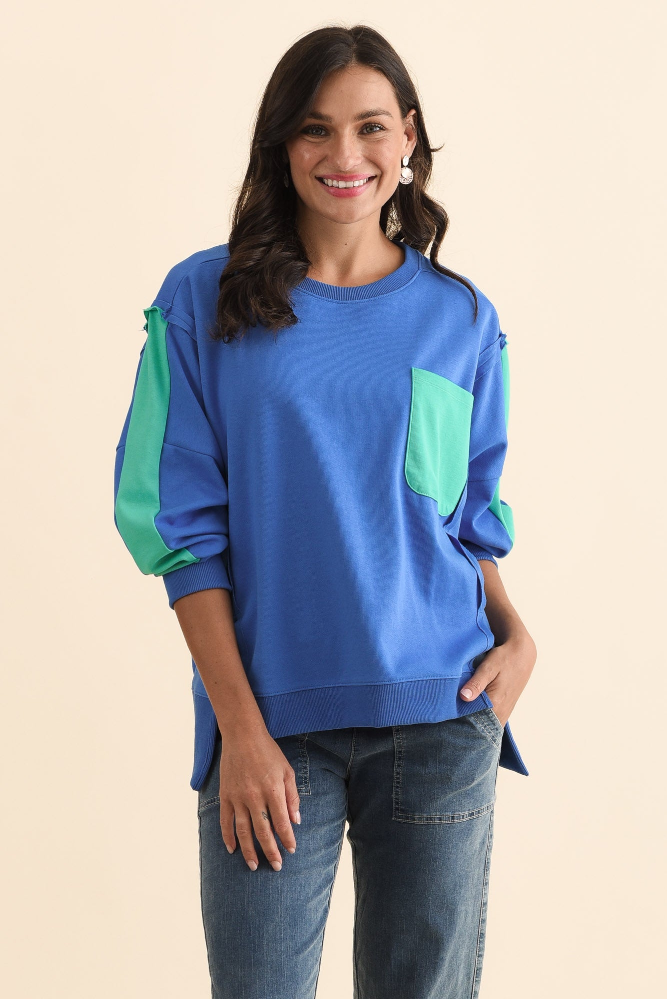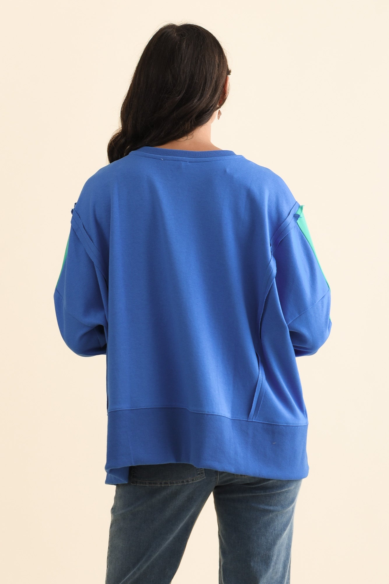 Tania Blue Contrast Cotton Sweatshirt