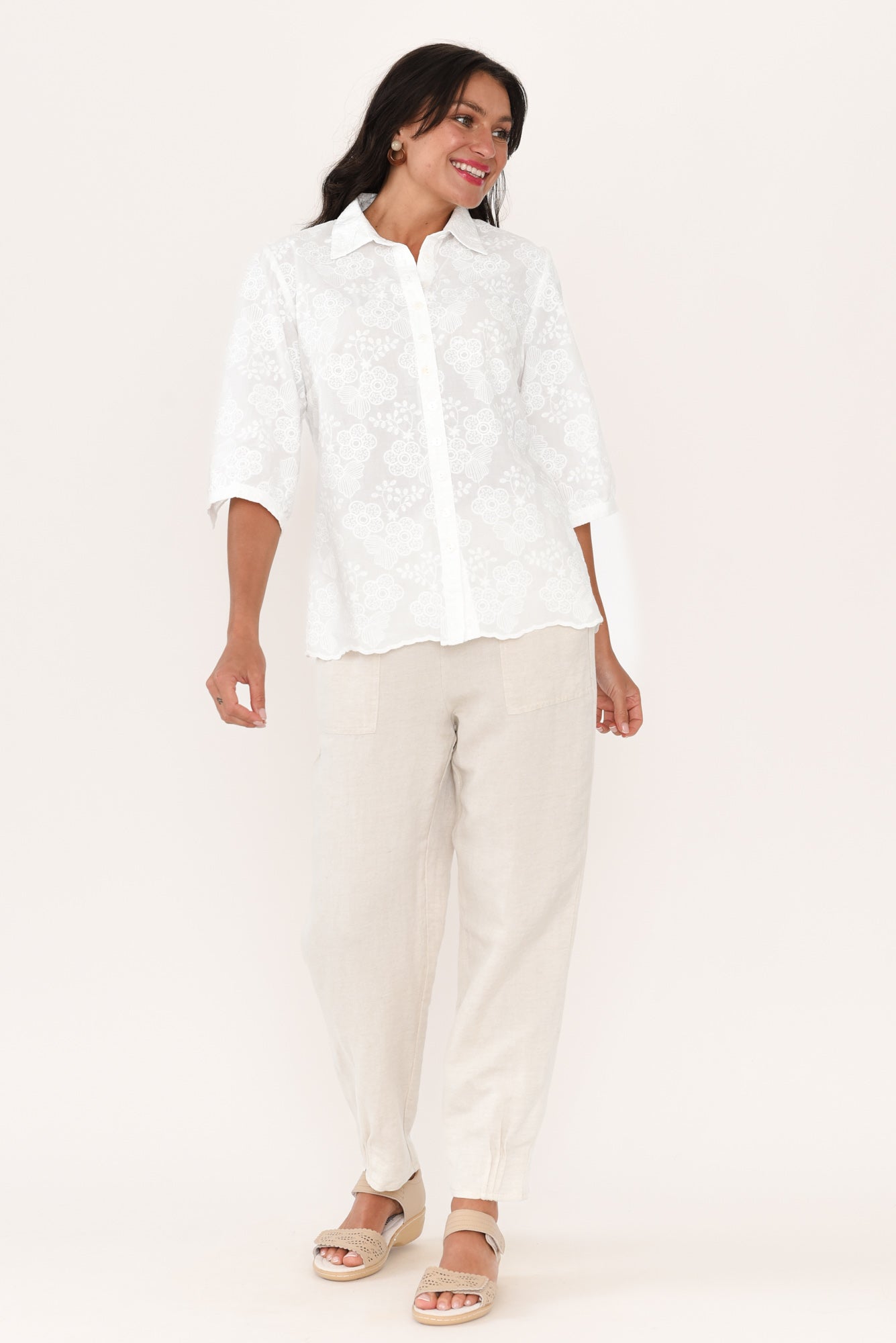 THEA WHITE FLOWER EMBROIDERED COTTON SHIRT