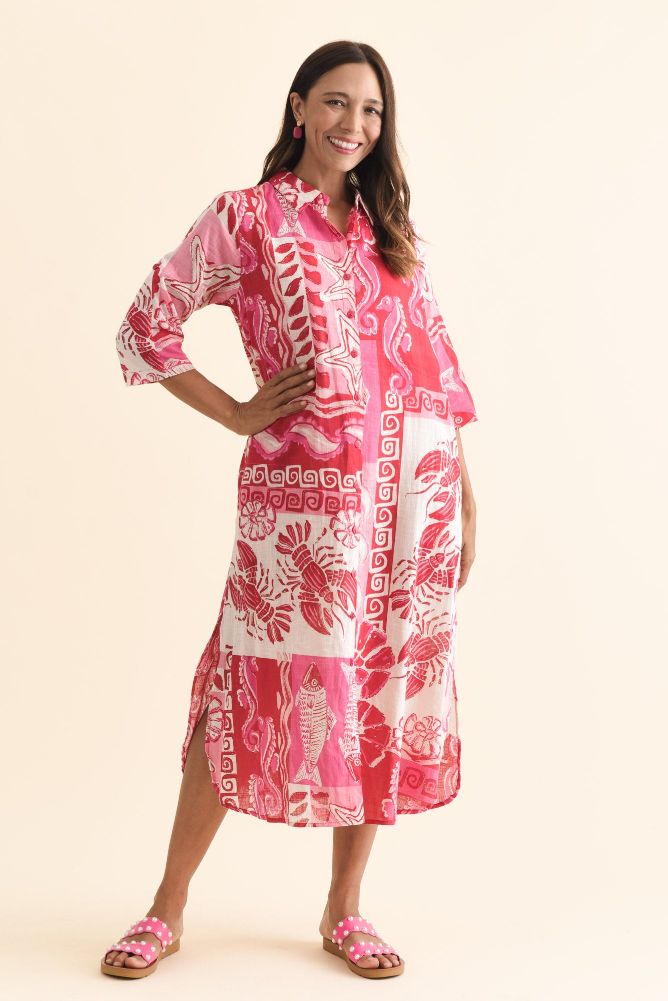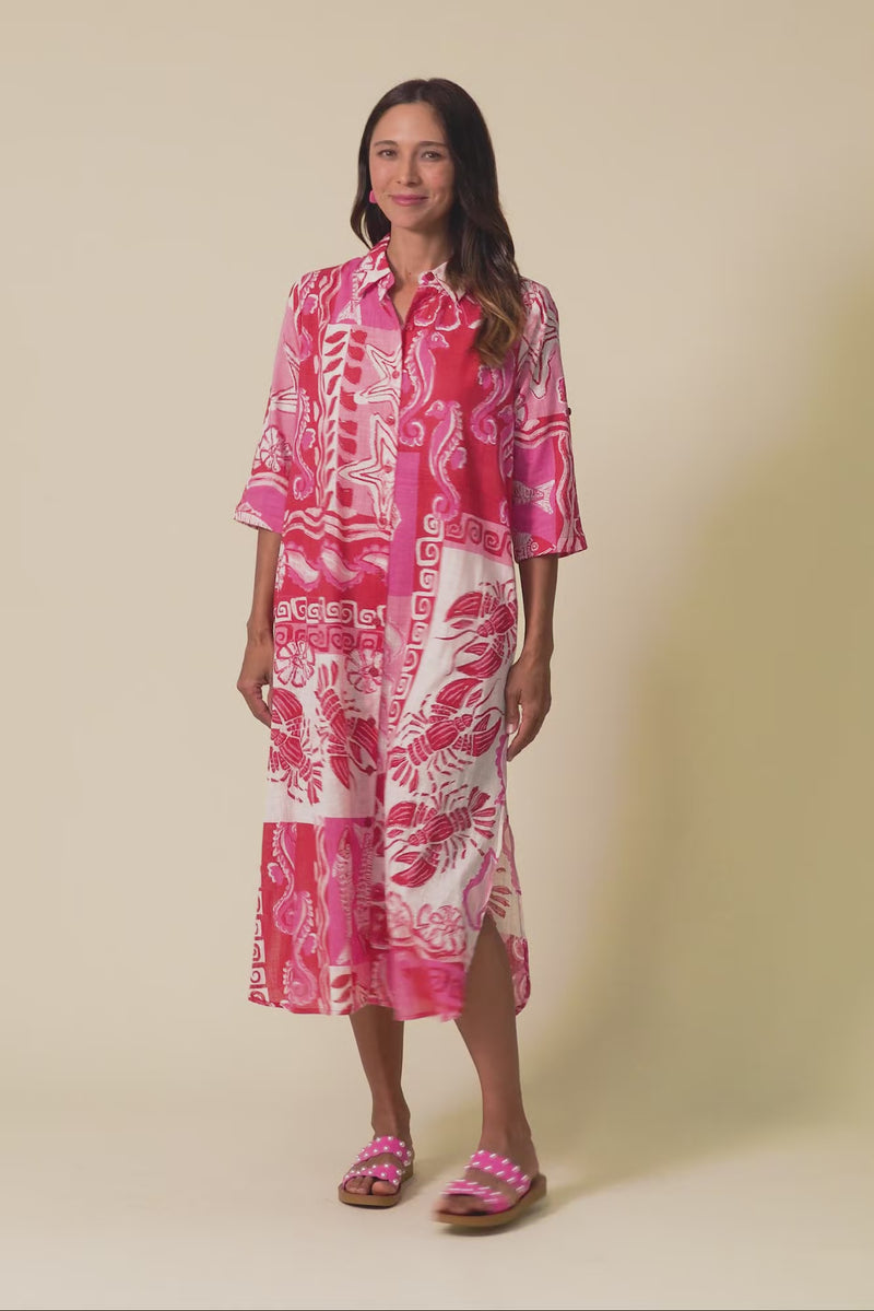 TRICIA RED OCEAN COTTON SHIRT DRESS