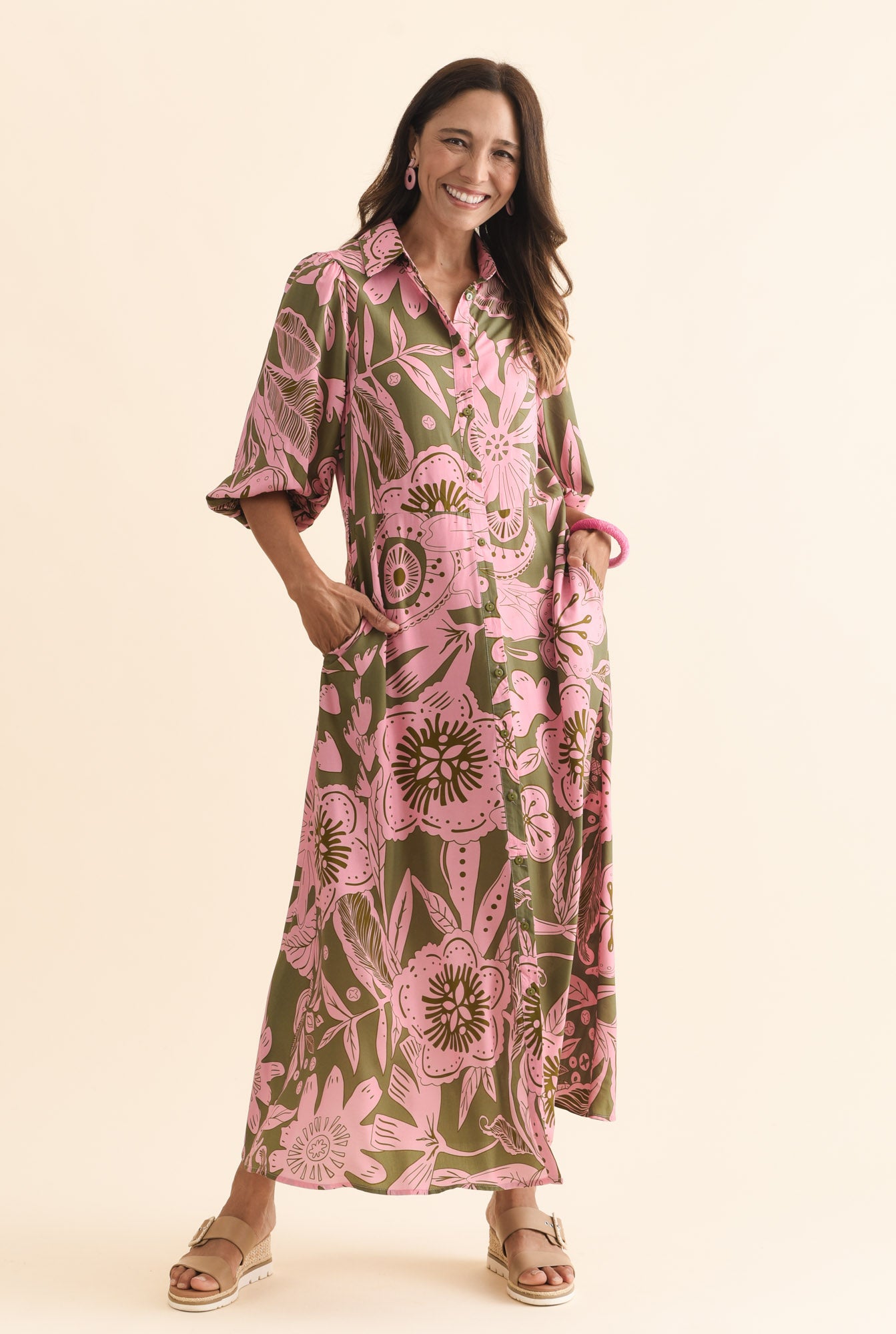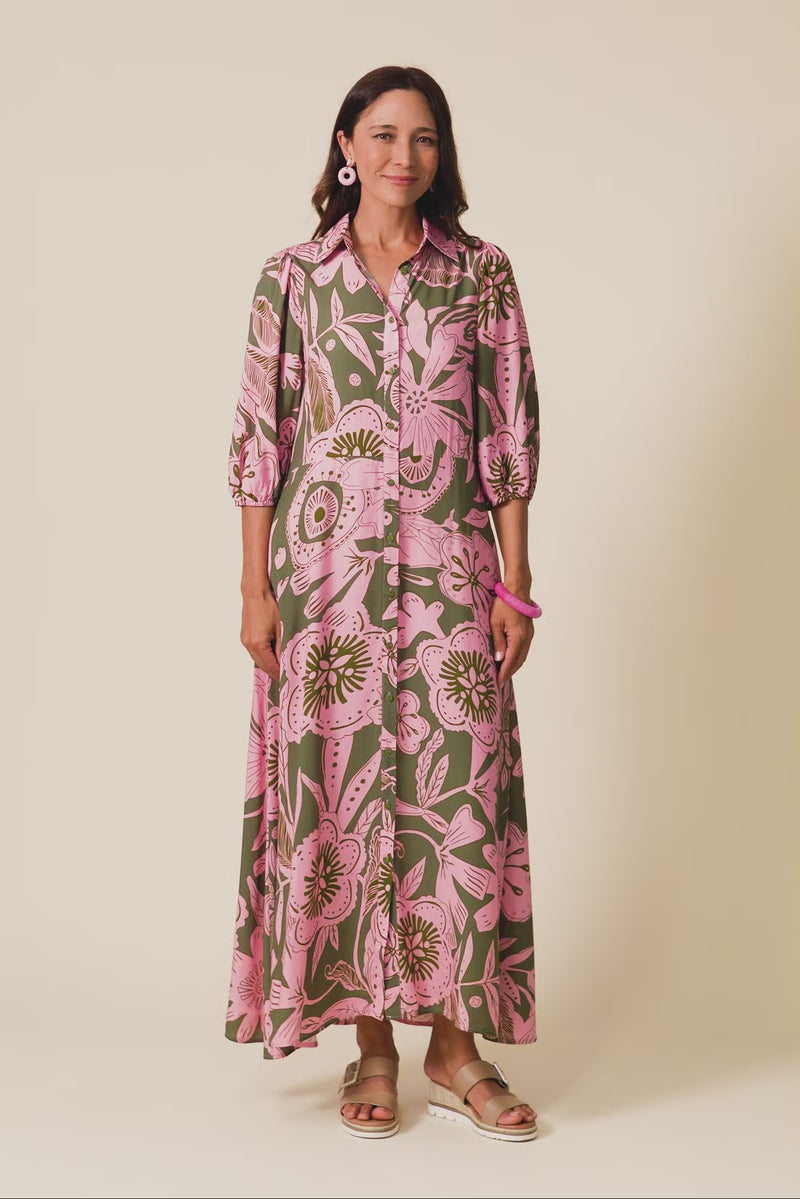 TRINITY KHAKI FLORAL TIE DRESS