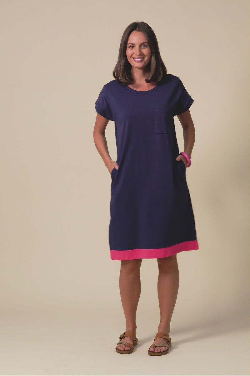 TRINITY NAVY SPLICE COTTON TEE DRESS