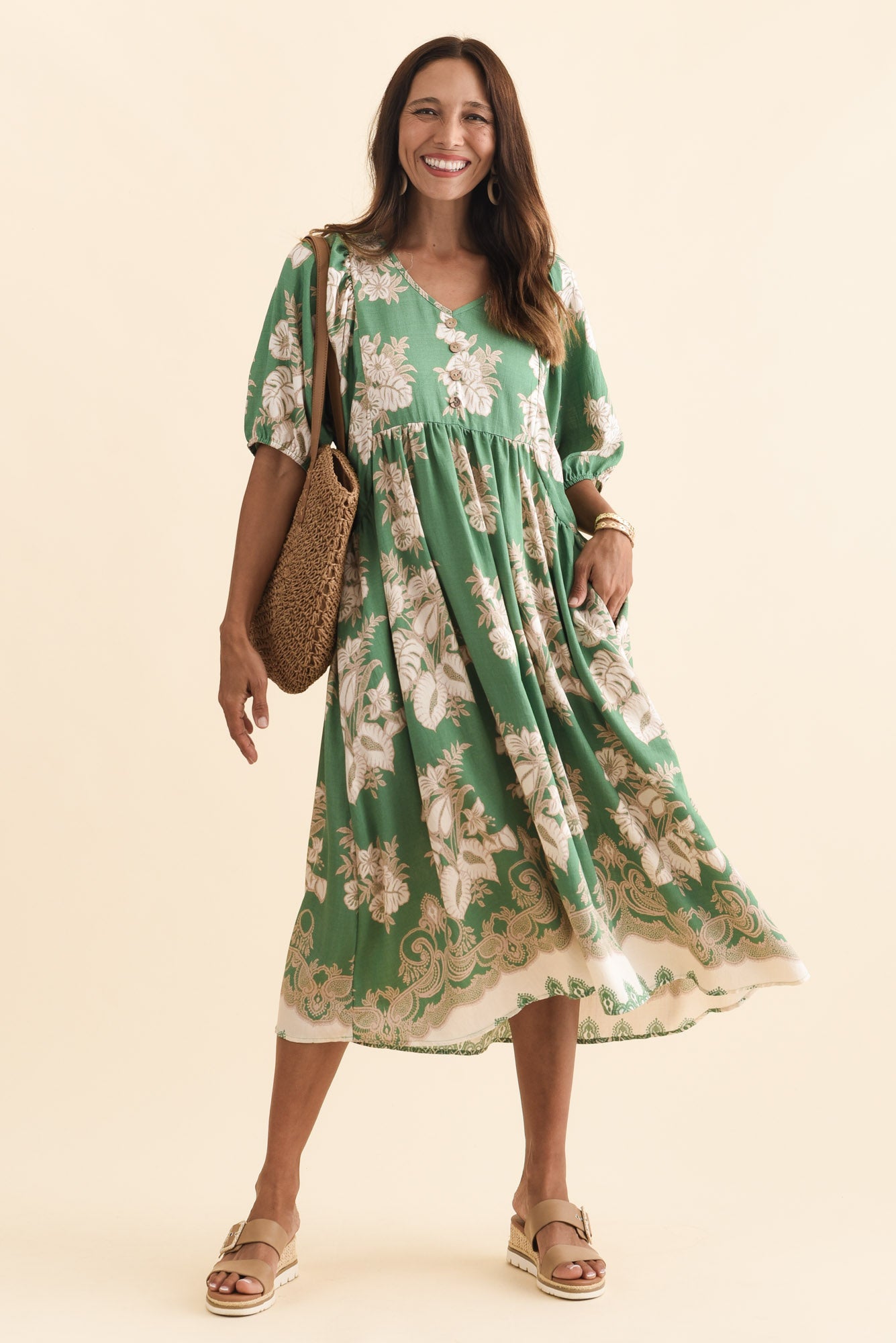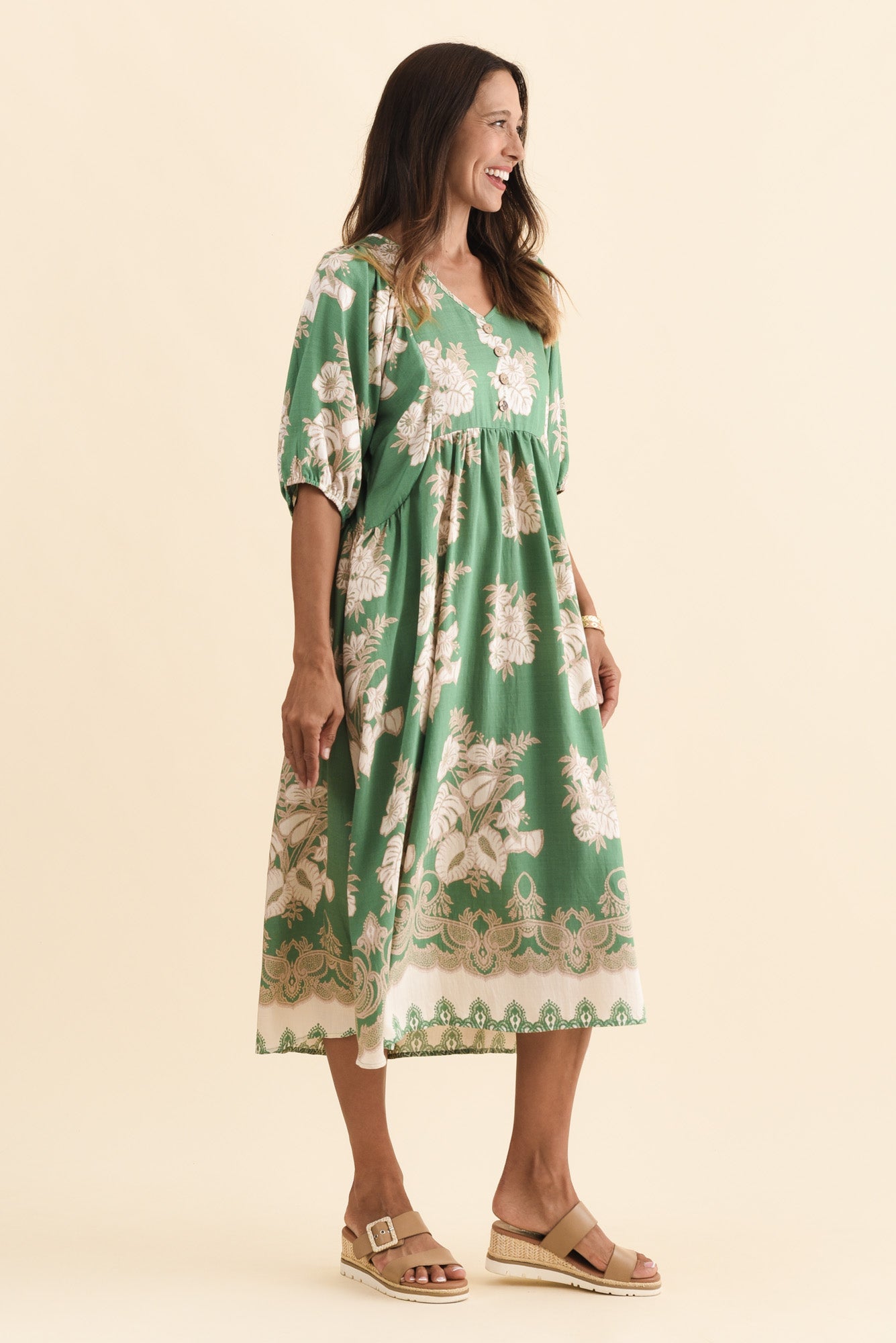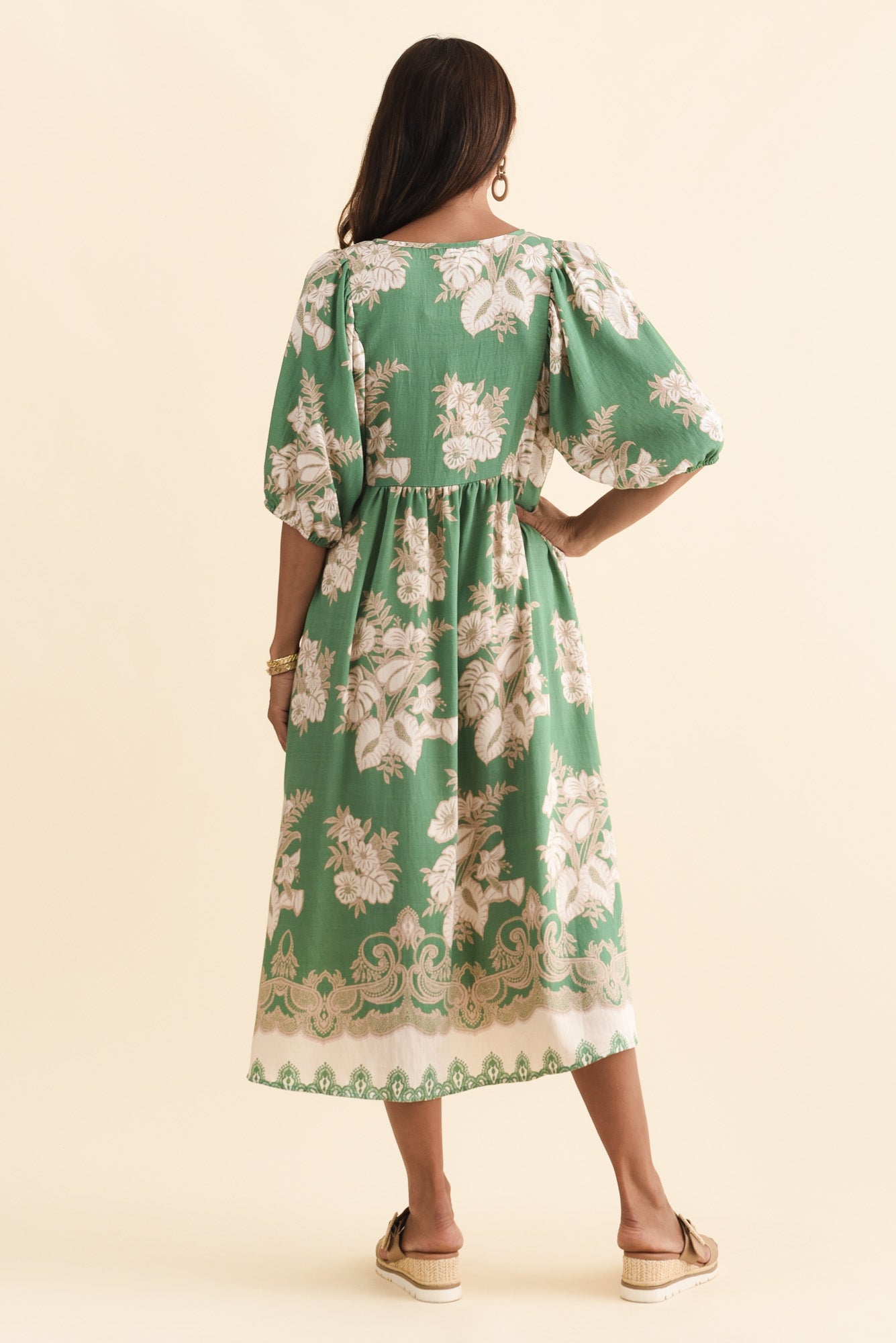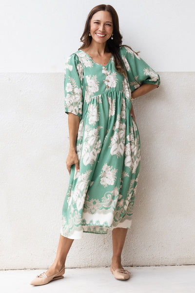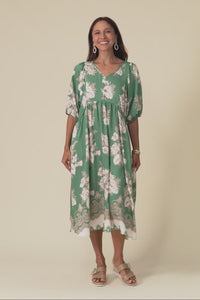 Troyanne Green Garden Midi Dress