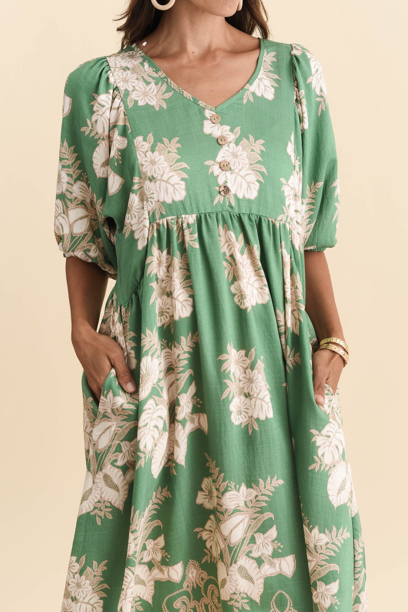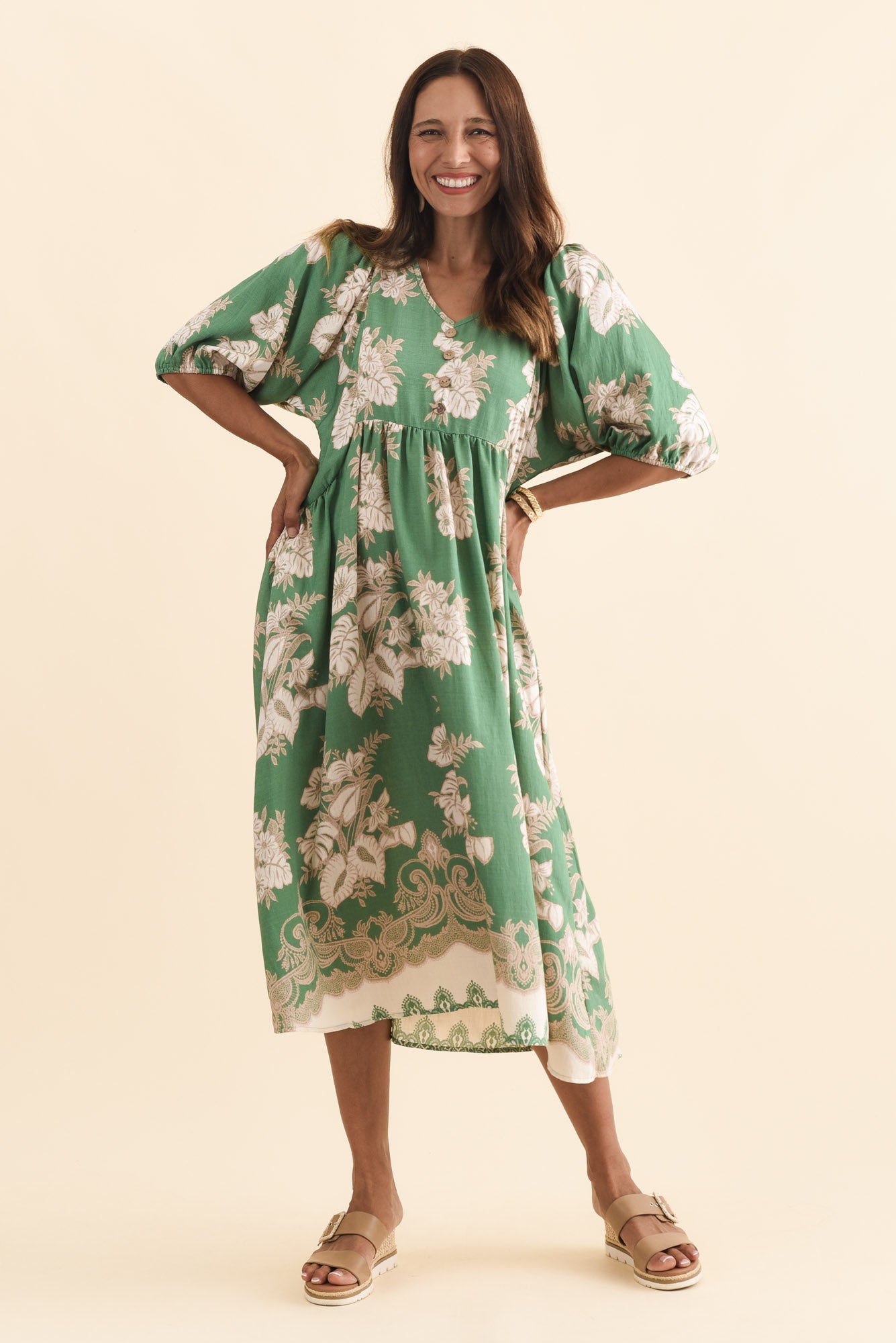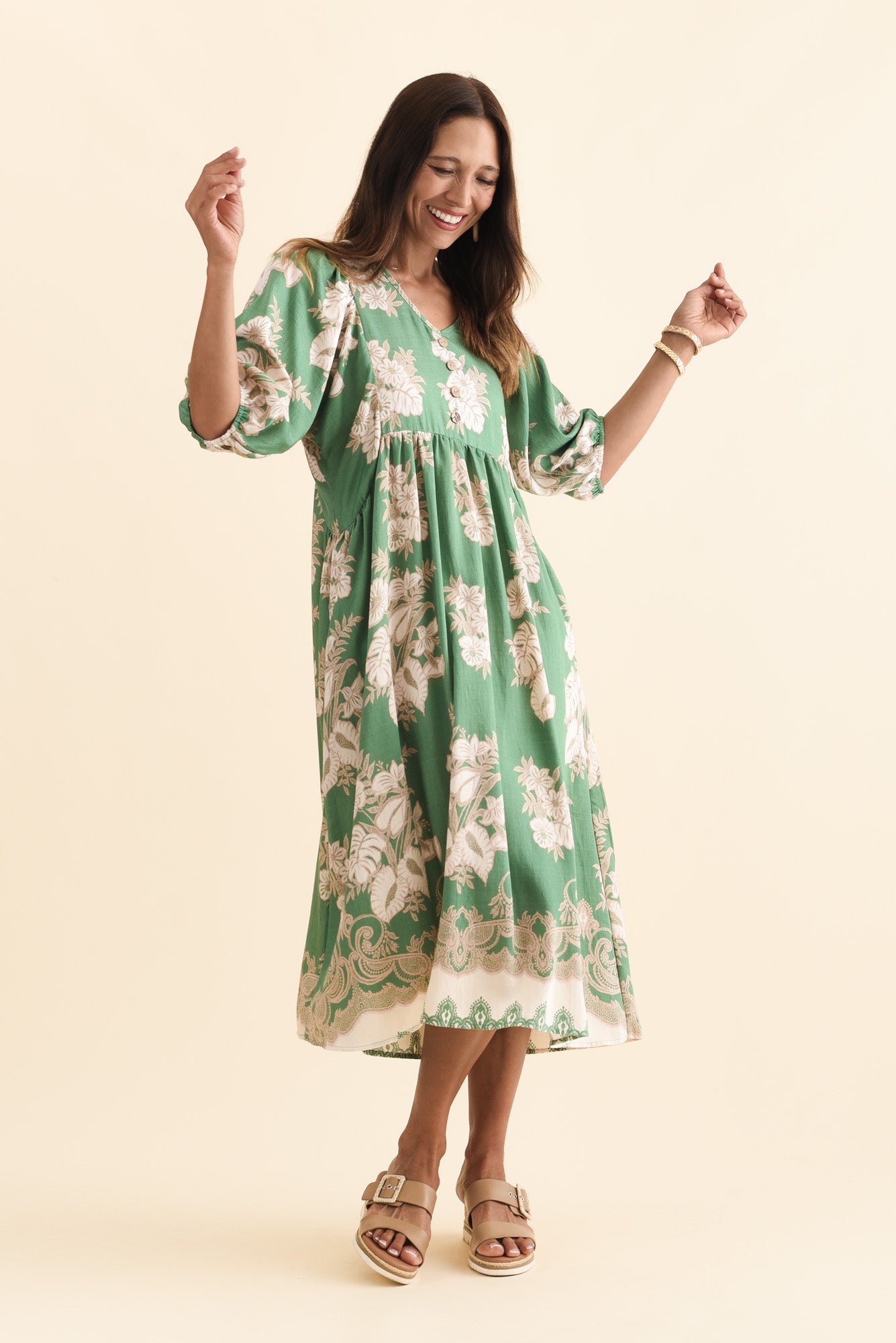 Troyanne Green Garden Midi Dress
