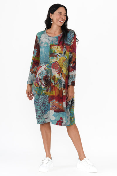 UMBRIA BLUE ABSTRACT COTTON DRESS