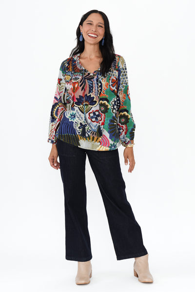 Virgie Navy Floral Tie Top