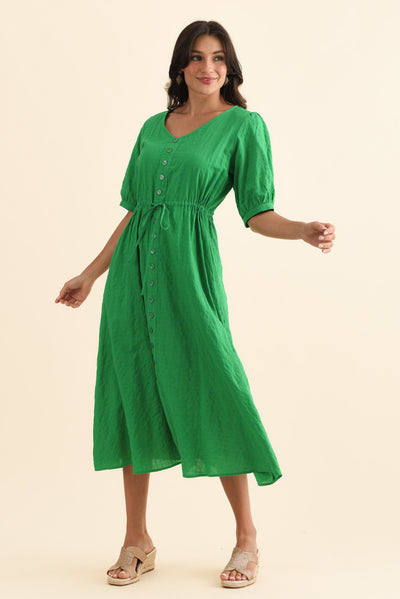 WESLYN GREEN CHECK COTTON BLEND DRESS