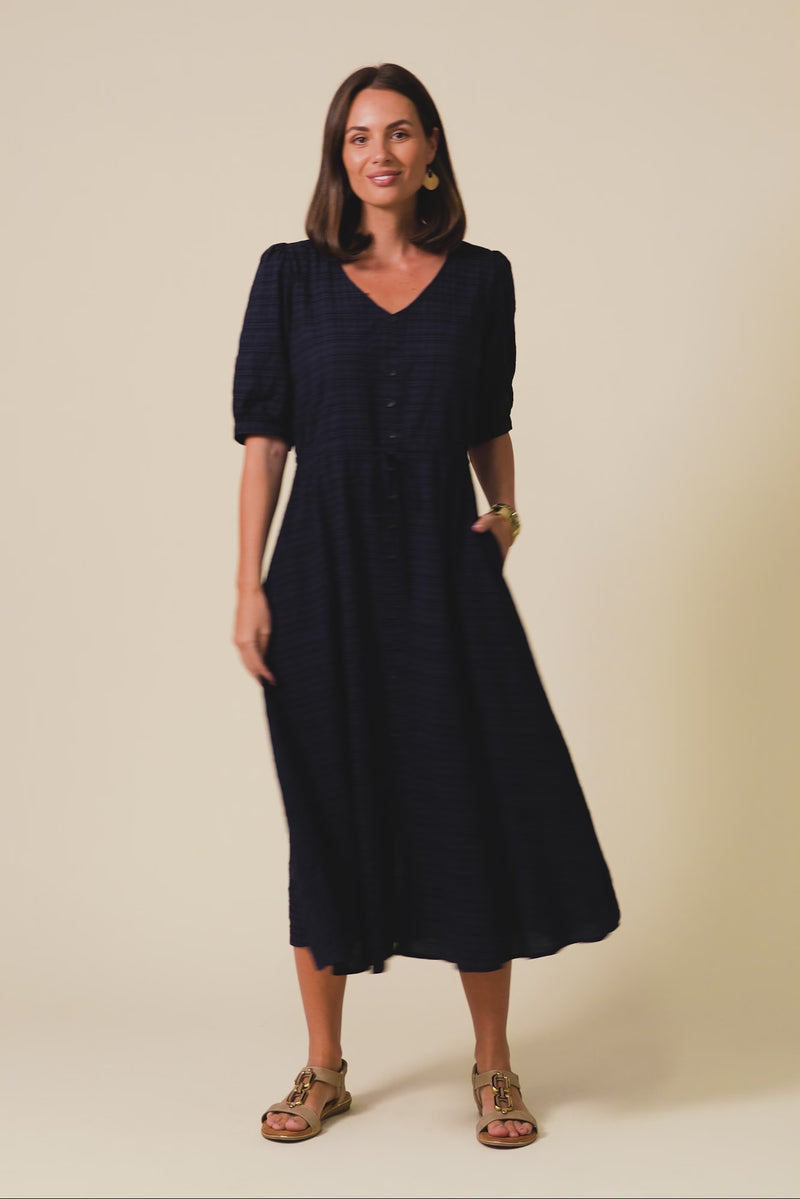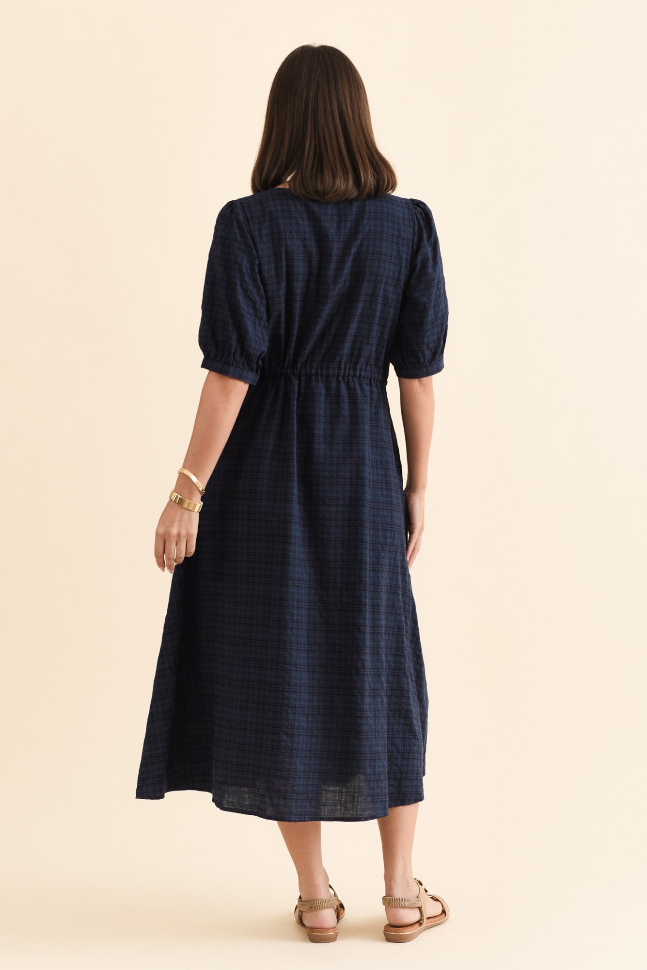 WESLYN NAVY CHECK COTTON BLEND DRESS