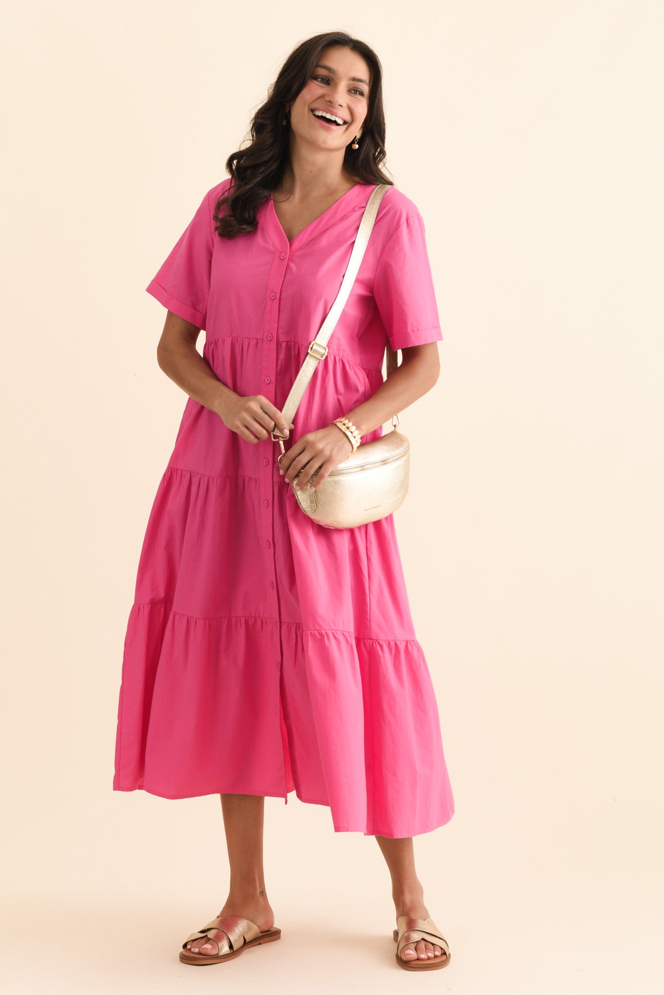 WINONA FUCHSIA COTTON BUTTON DRESS