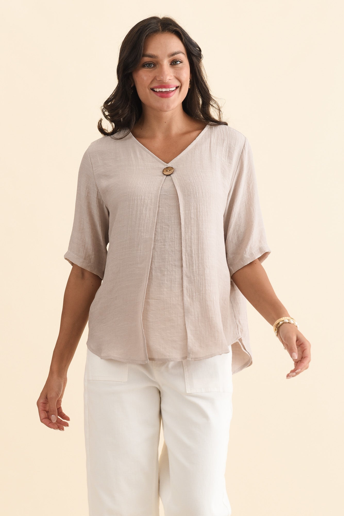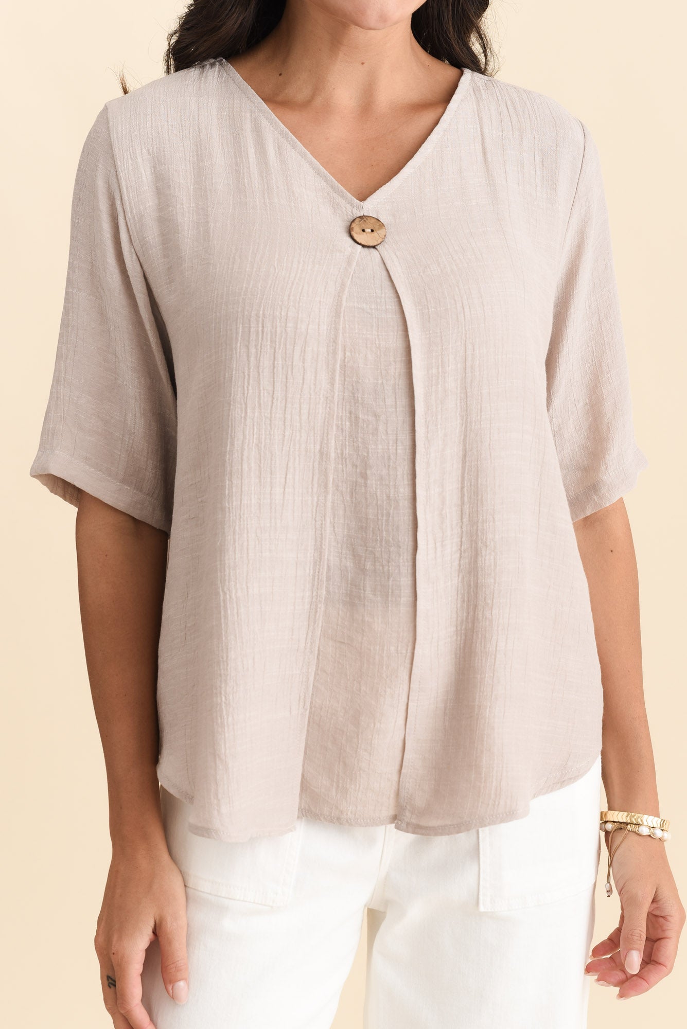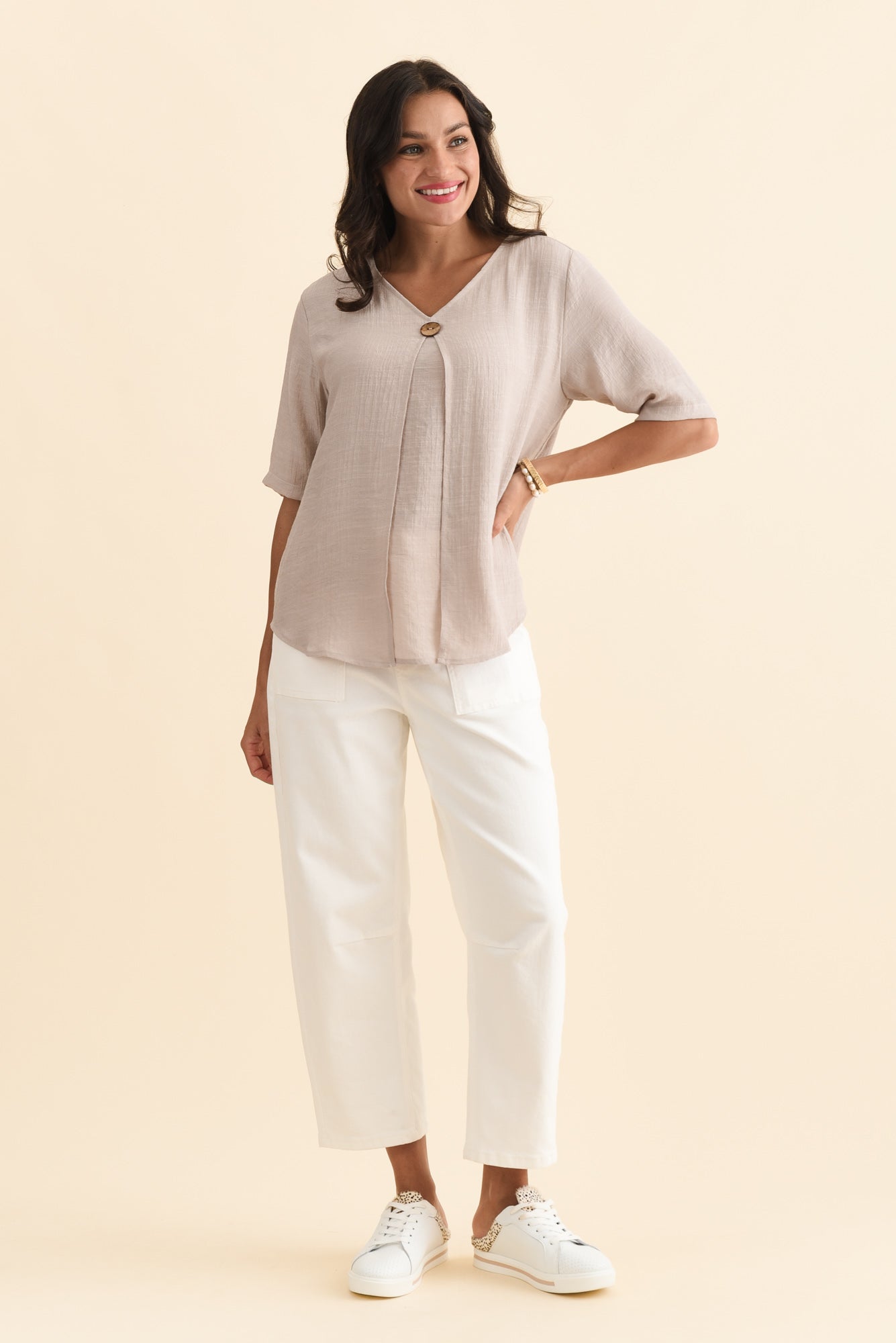 A lightweight, breathable non-stretch fabric featuring a soft, flowing drape and a subtly textured feel for comfort