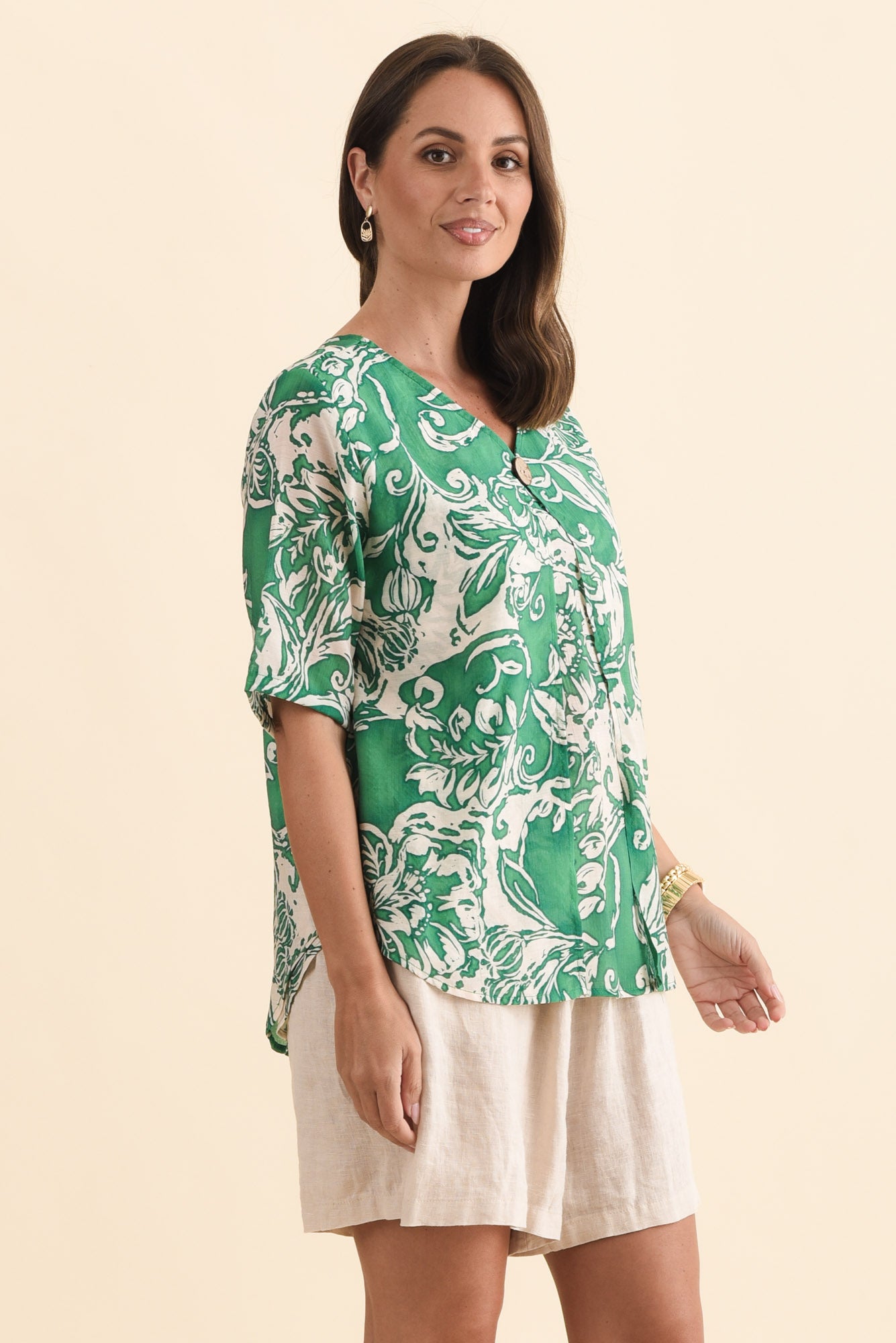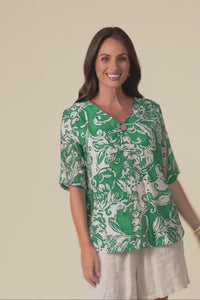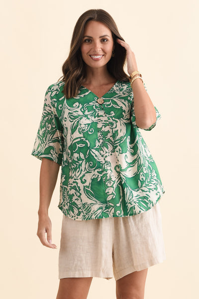 Yasmin Green Abstract Layered Button Top