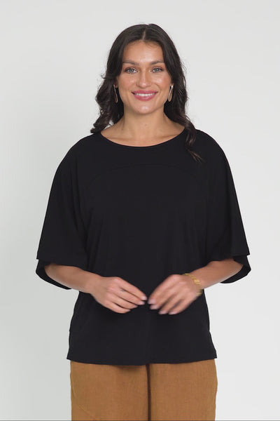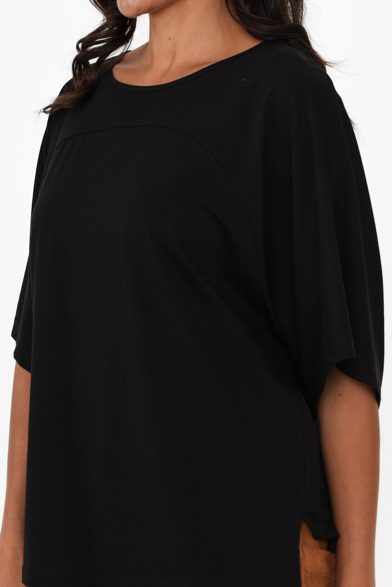 YOKE BLACK COTTON WIDE SLEEVE TEE