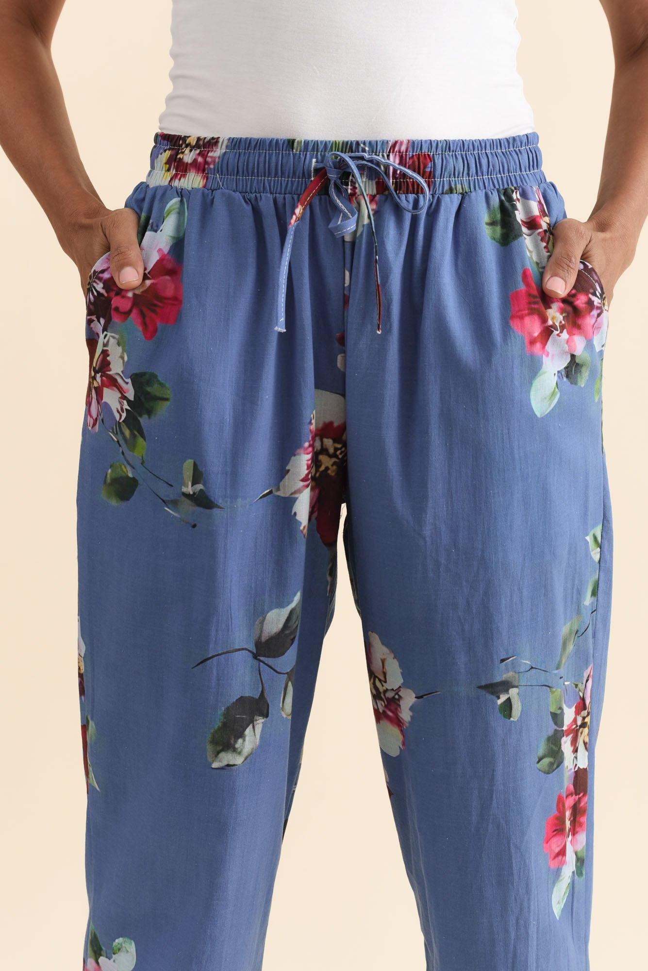 ZINA BLUE FLOWER COTTON PANTS